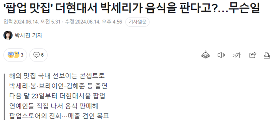 이번주 방송분에 23일날 판매할 팝업 음식 확정 나올거 같은데