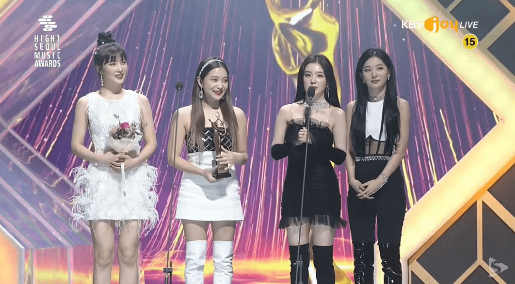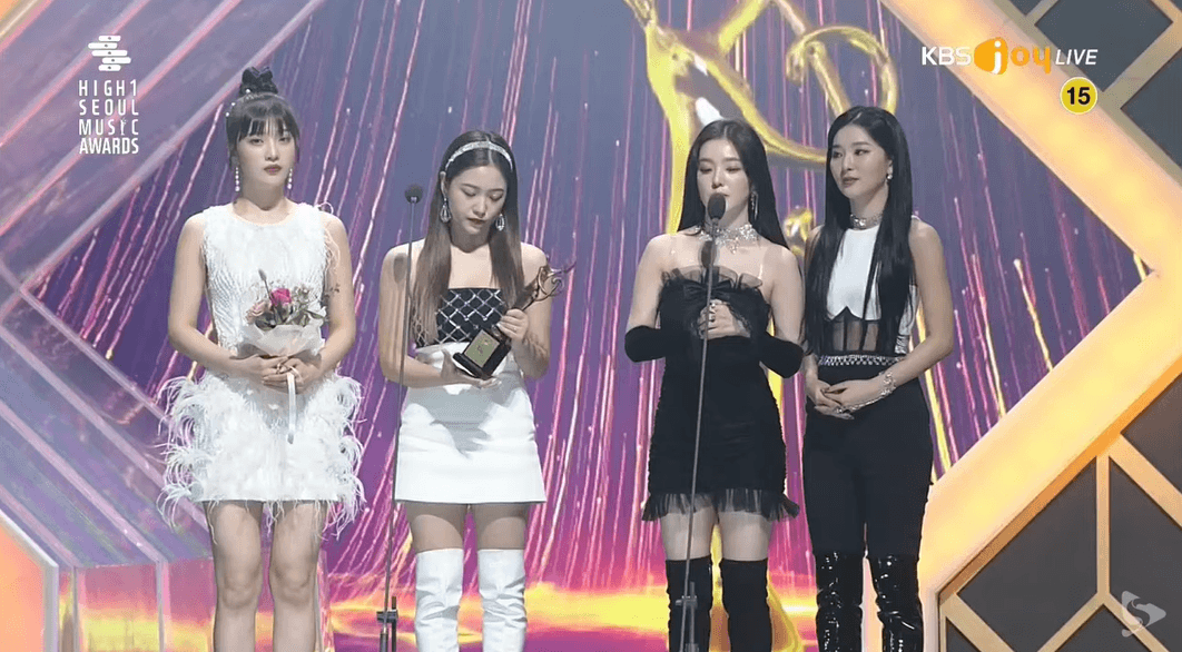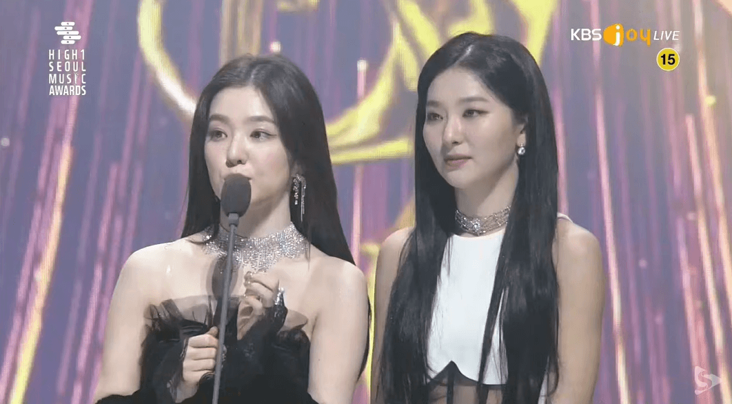 서울가요대상 수상 소감 말하는 아이린과 레드벨벳.GIF