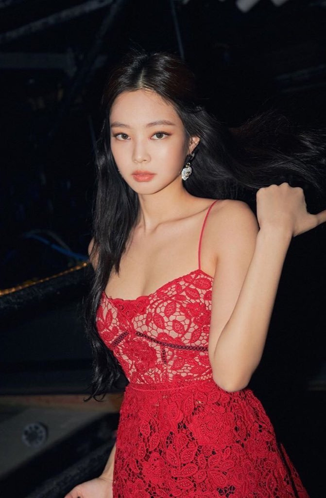 블랙핑크 제니 빨간 시쓰루 원피스