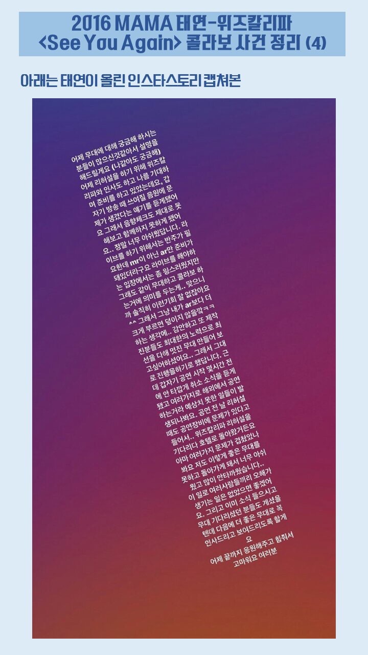 태연,위즈 칼리파 MAMA 문제로 취소 해명글 과 태연 See You Again 50초 버젼
