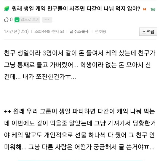 친구들이 사준 케이크 안 나눠준