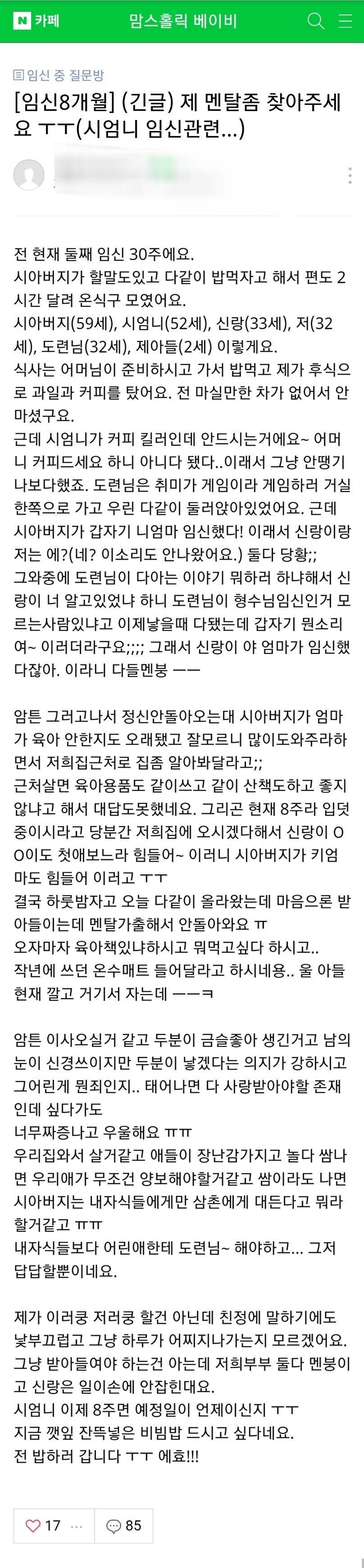 1. 글쓴 며느리는 둘째아이 임신 30주차