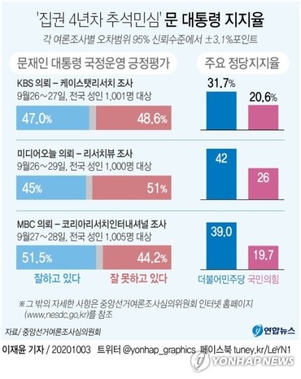 집권 4년차 문통 지지율 45...강철 콘크리트 지지율