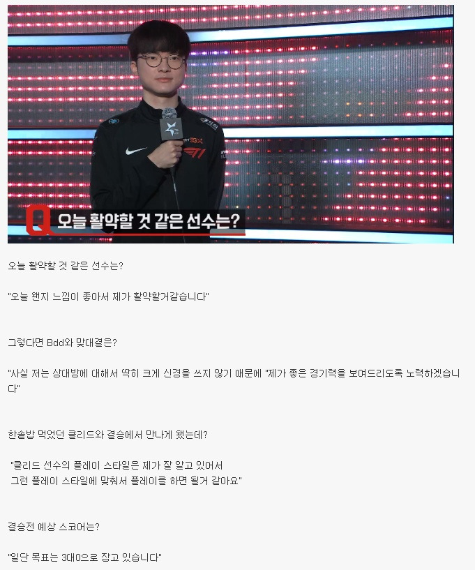 경기전 경기내용 스포했던 페이커