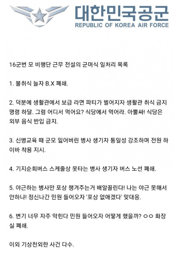 공군 비행단에서 있었던 군대식 일처리