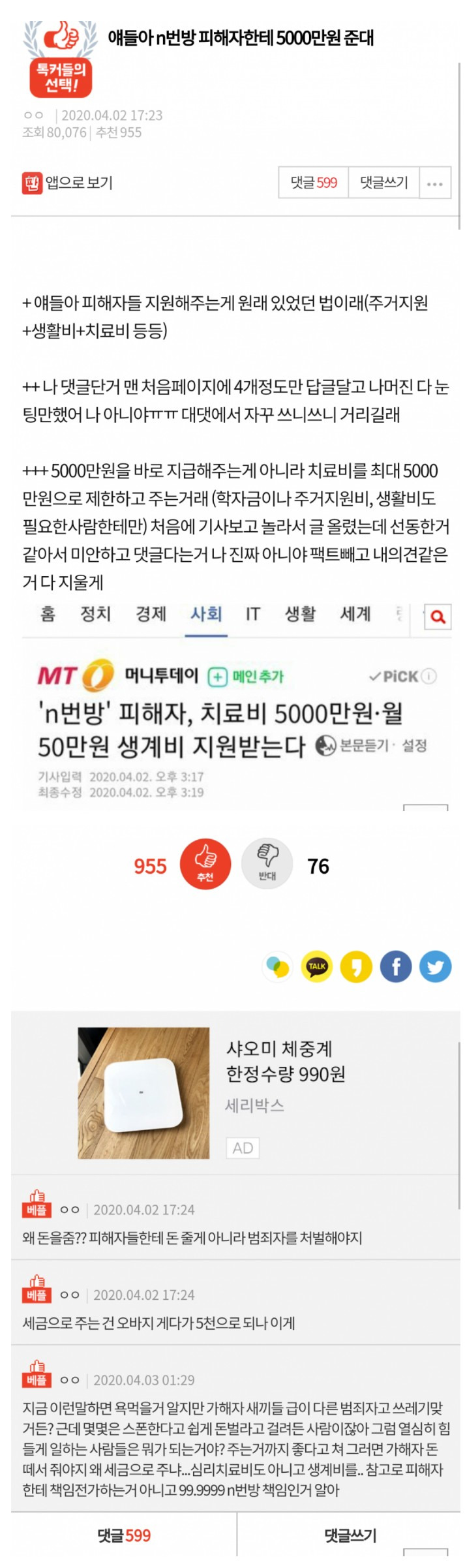 n번방 피해자 5000만원 지원...판 반응..