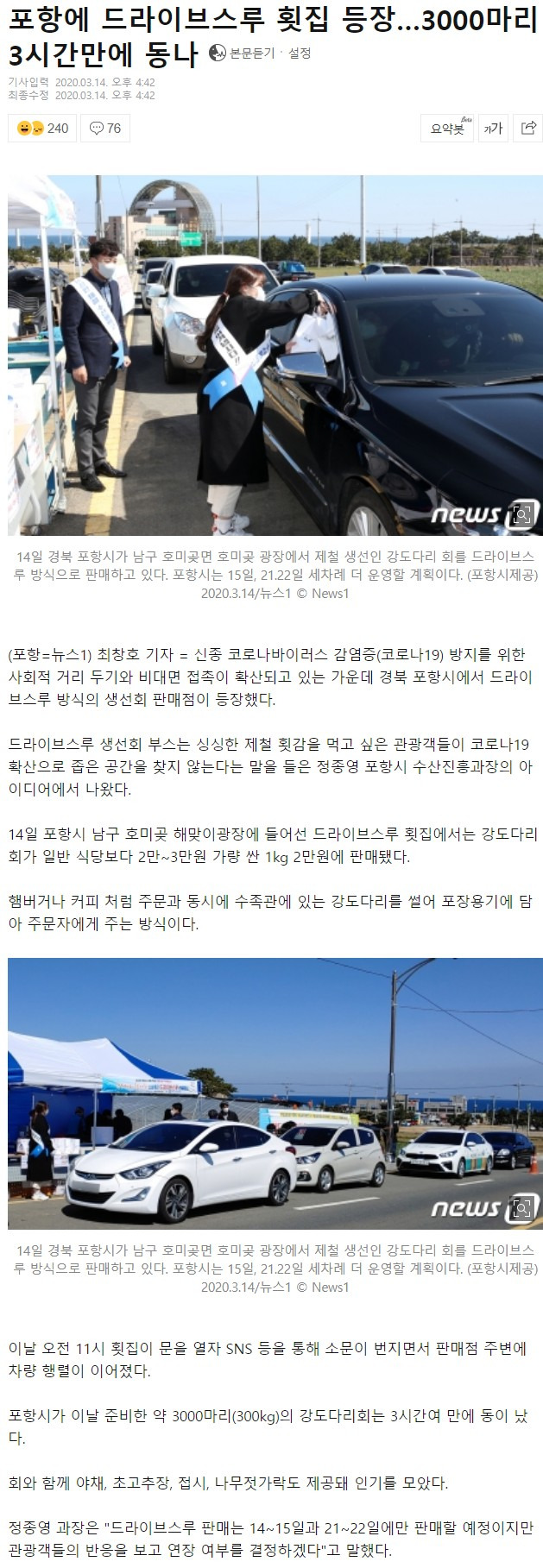 3시간 3천마리 완판 드라이브 스루 횟집