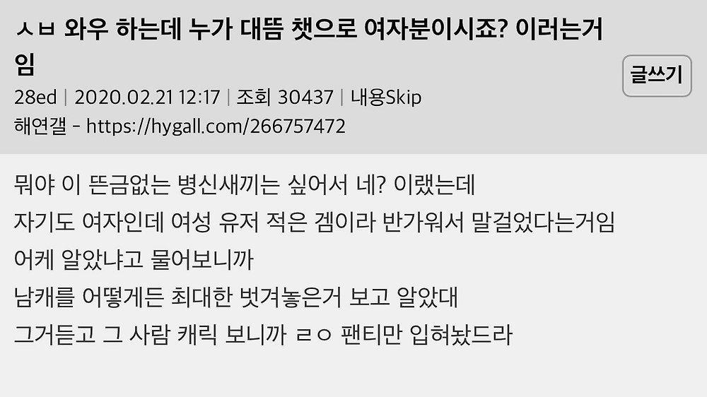 게임하는데 누가 여자냐고 물어봄