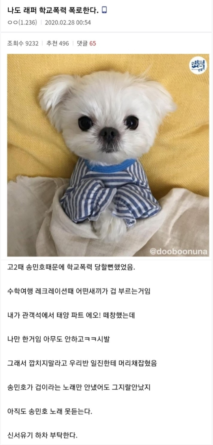 송민호 때문에 학교폭력 당했다는 힙갤러