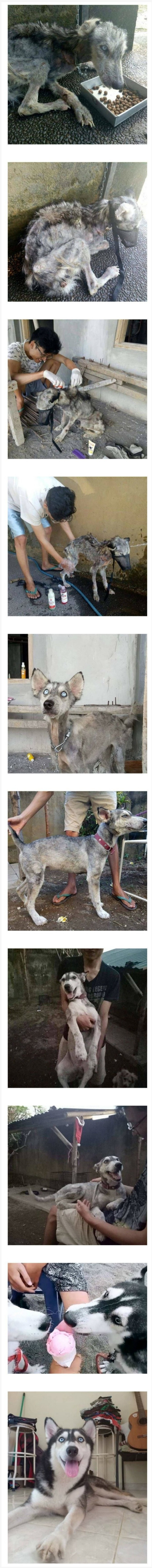 말라 죽어가던 허스키 전과 후