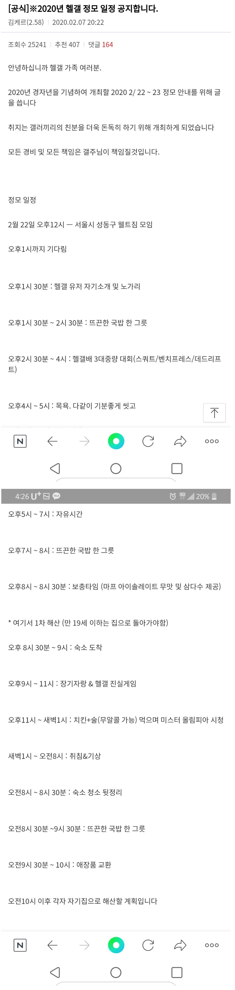 헬스갤 정모 루틴