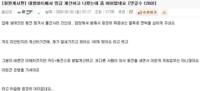 대형마트에서 방금 계산하고 왔는데 어이없네요
