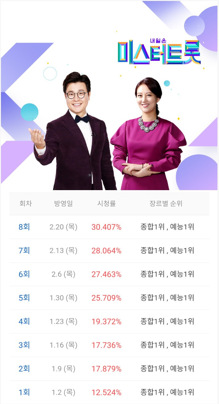 미스터트롯 시청률 추이