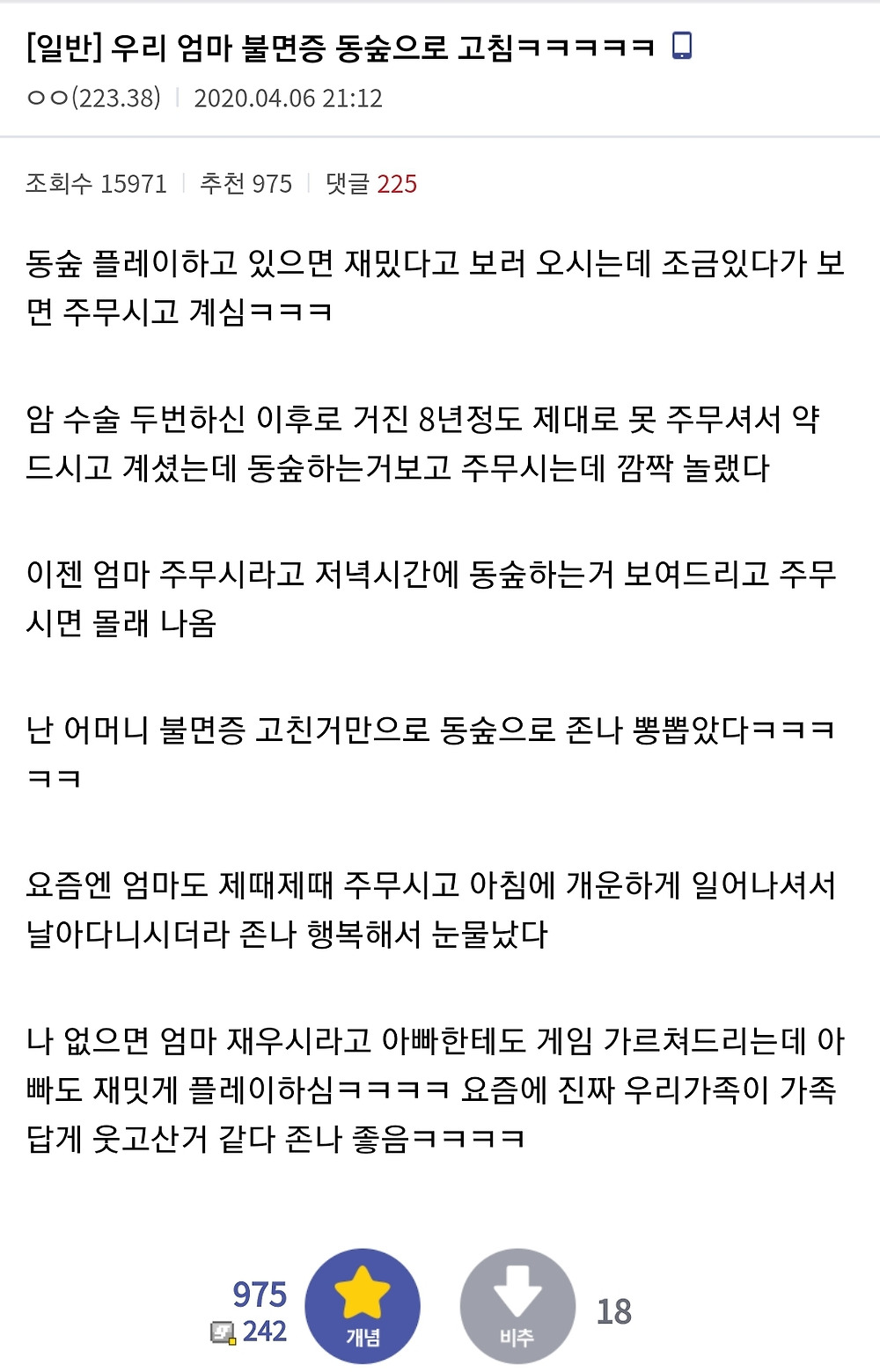어머니의 불면증을 동물의 숲으로 고친 효자