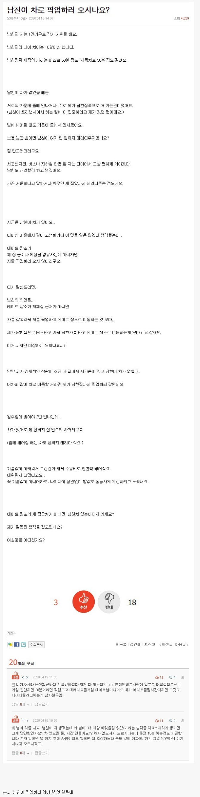 데이트할 때 차로 데리러 오지 않는 남친